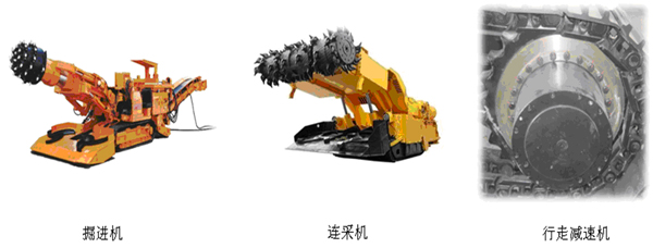 煤機產品主要是供綜采設備使用,煤礦機械設備的“三機一架”里面的三機都有我公司已經生產過的或者是在制的產品。主要產品有用于高端掘進設備的無退刀槽人字齒截割減速機,有用于普通掘進設備的全系列掘進截割減速機和行走減速機,有用于連采機上的連采截割減速機,用于掘錨機上的連采截割減速機和裝載減速機,用于刮板運輸機上的刮板機減速機,以及用于采煤機上面的搖臂、牽引和行走的齒輪件等產品。